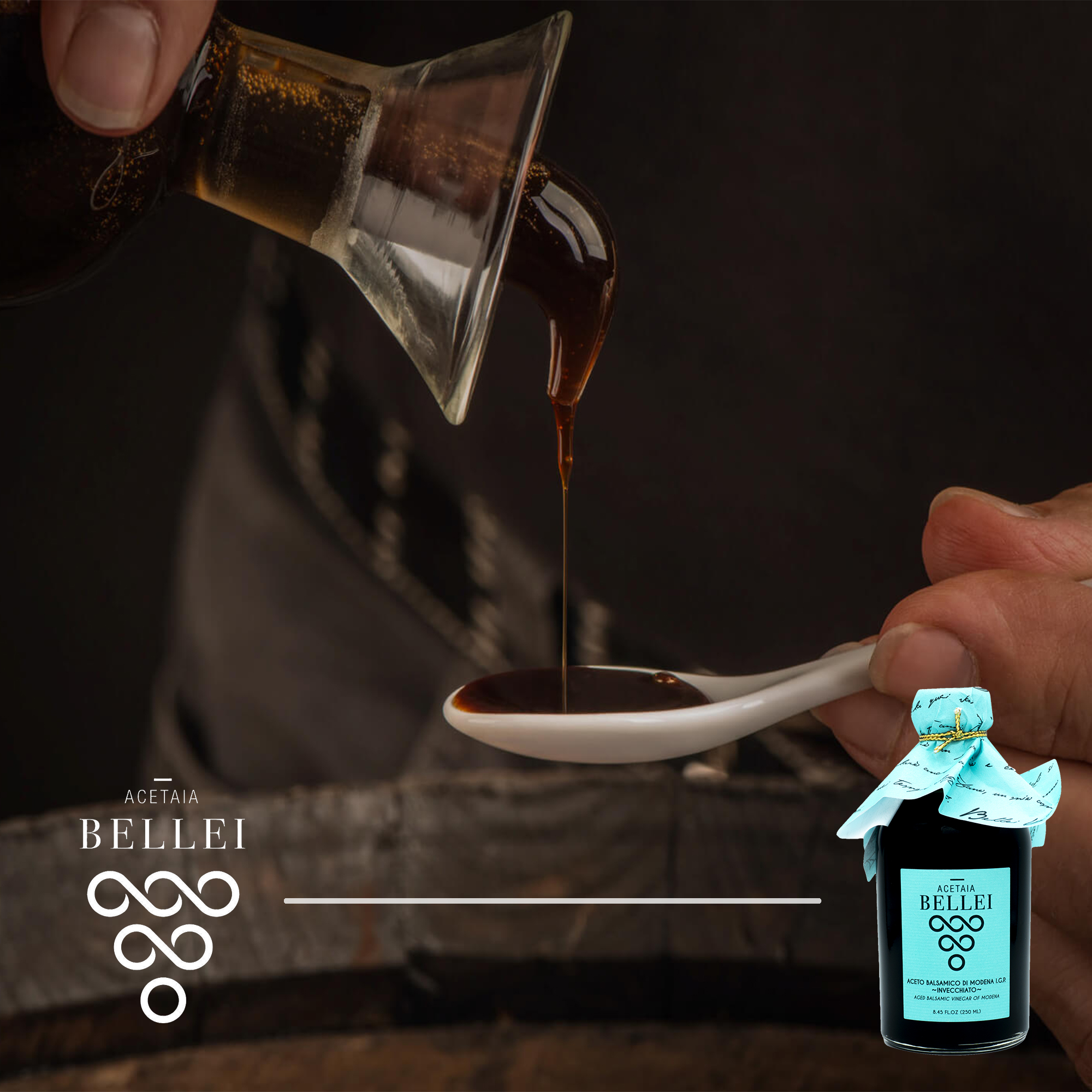 * Het rijpt uitsluitend in eikenhouten vaten. Deze balsamico begeleidt perfect traditionele gerechten: van gekookt vlees, over gebraden vlees tot vette vis zoals paling. Een fundamenteel ingrediënt om groentegerechten zoals gekarameliseerde uien of gegrilde groentegerechten te karakteriseren, het geeft een onnavolgbare smaak aan elke salade. Ideaal bij Parmigiano Reggiano en past perfect bij kaasgerechten. Ook ideaal op vers fruit.