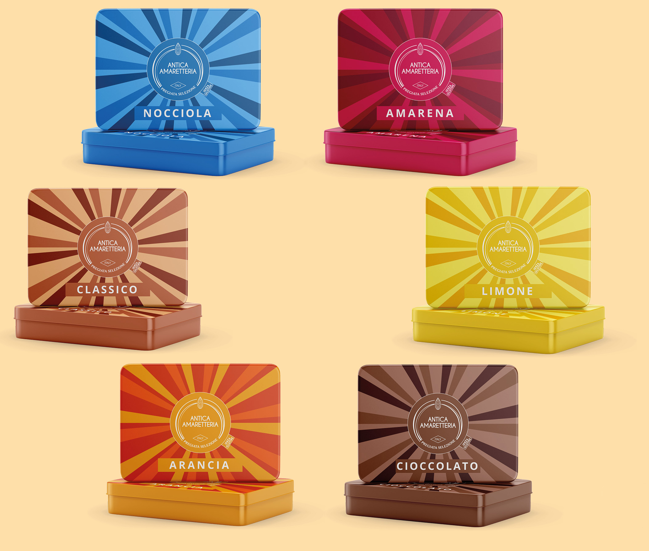 Cartone misto di latte di amaretti – Mix doos met blikken met amaretti koekjes in diverse smaken (18x 150 g)