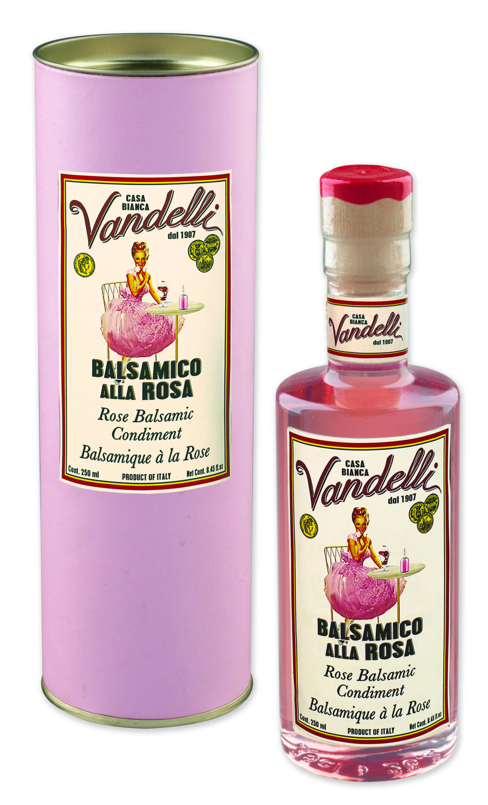 Condimento Balsamico Rosa alla Rosa, Tubo rosa – Rozenbalsamico azijn in roze koker (250 ml)