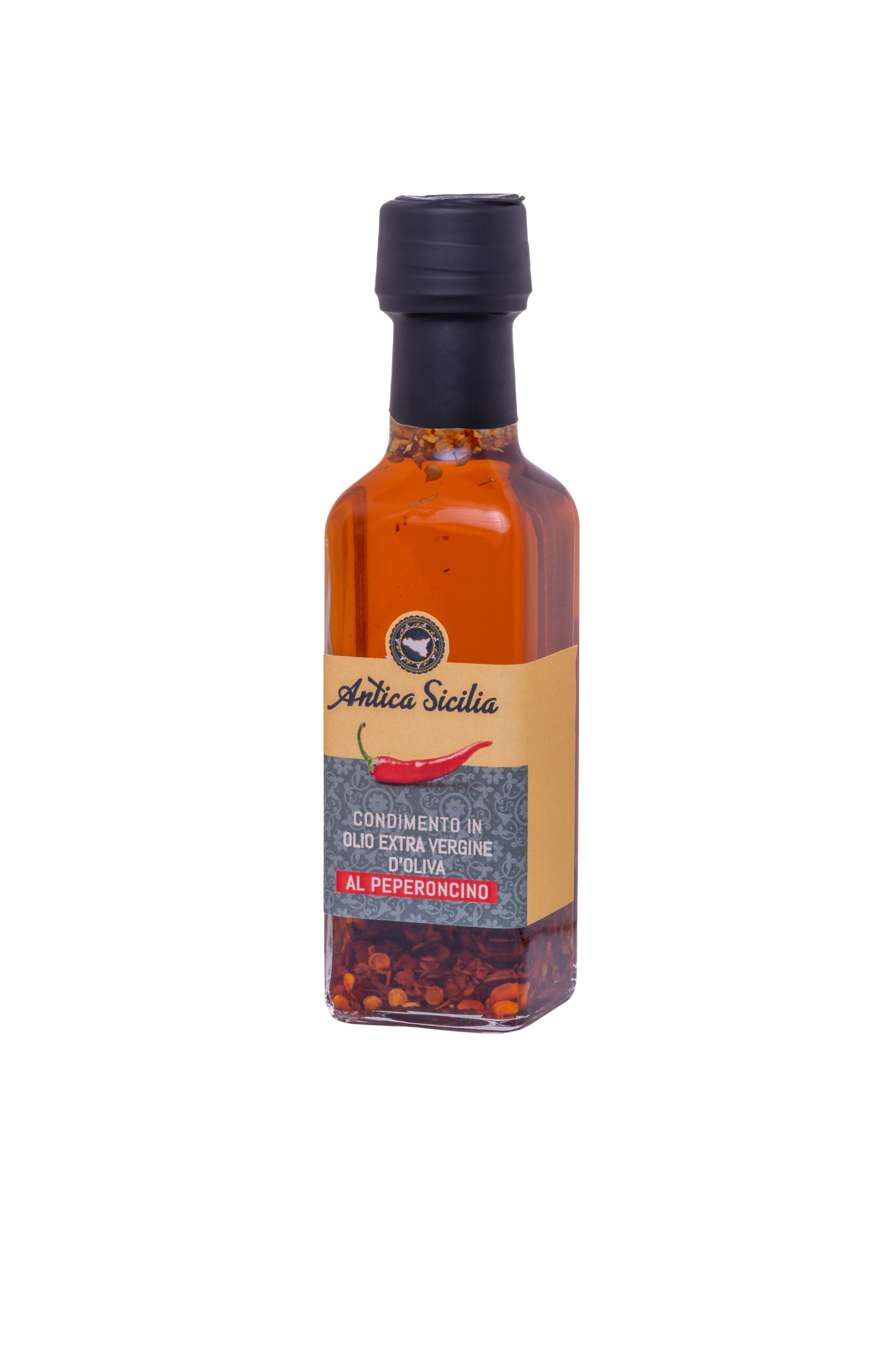 Condimento in olio e.v.o. al Peperoncino in bottiglia rettangolare (10 cl)