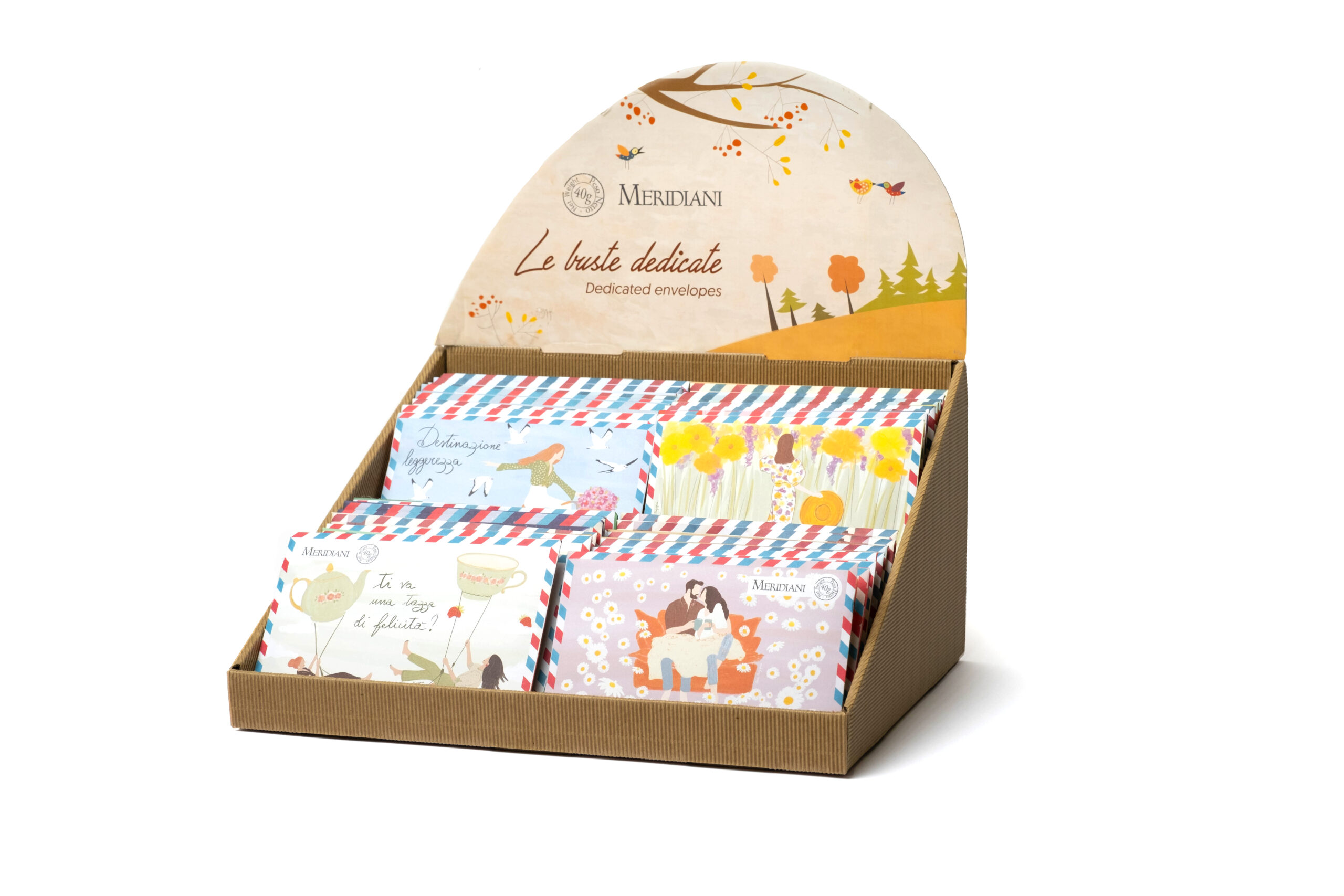 BUSTE TÈ E TISANE, Espositore da banco in cartone 40 buste assortite TE’ e TISANE – Display BUSTE TÈ E TISANE, enveloppen met een mix aan zwarte thee en drie soorten infusies (40x 40 g)