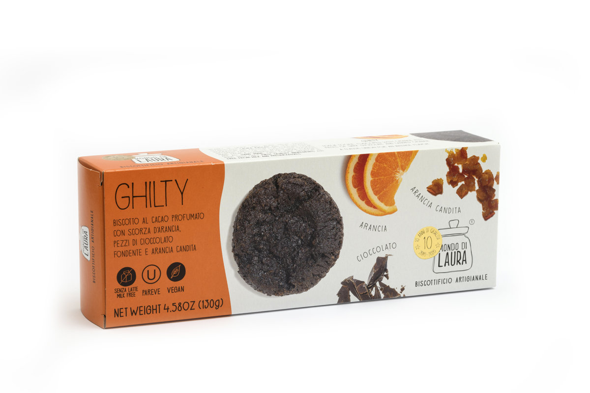Ghilty, biscotto al cacao con scorza d’Arancio e pezzi di Cioccolato e Arancia candita – GHILTY, Chocoladekoekje met sinaasappelschil en geconfijte sinaasappel (130 g)