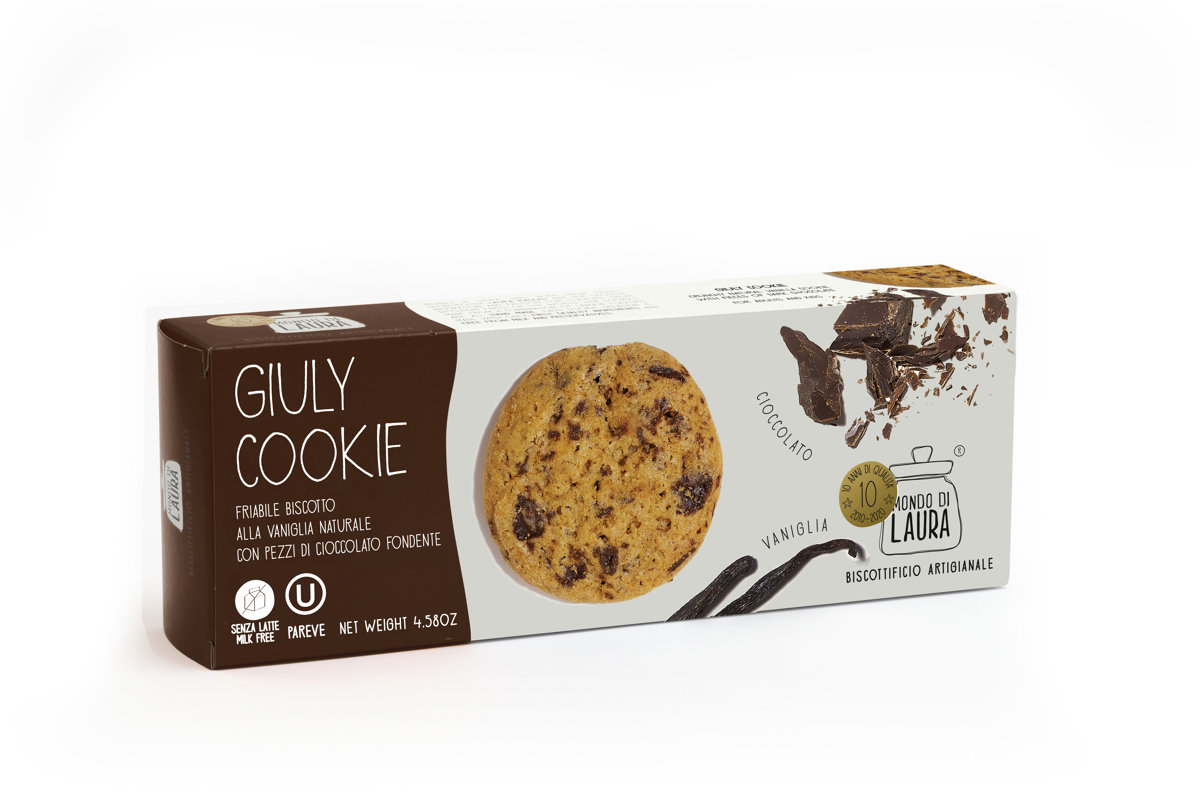 Giuly Cookie, biscotto alla vaniglia naturale con pezzi di cioccolato fondente – GIULY COOKIE, chocoladekoekje met vanille (130 g)