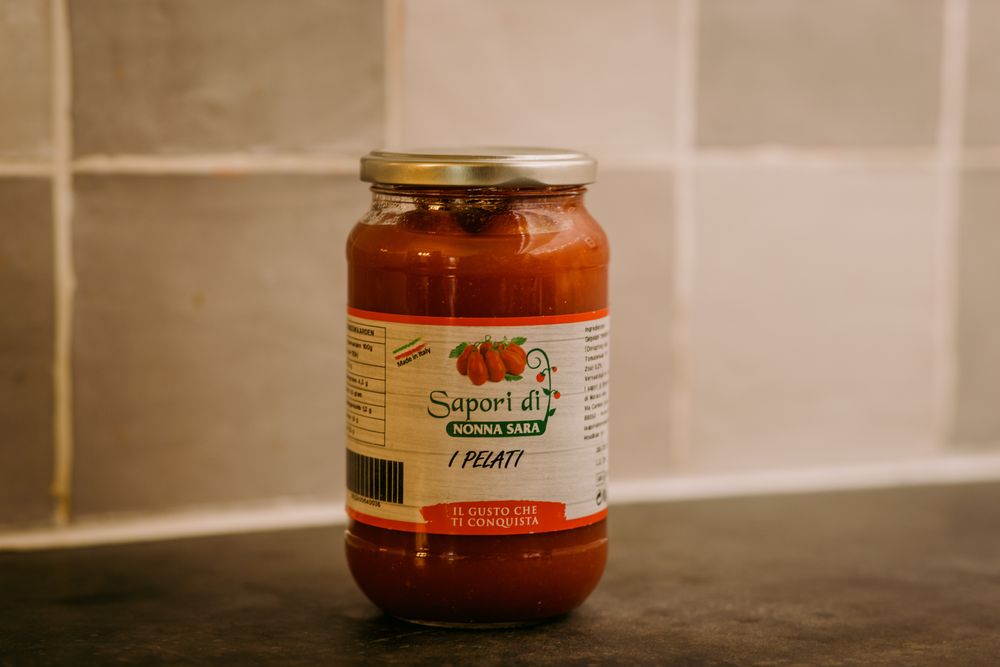 Ingrediënten: gepelde tomaten, tomatensap en zout.