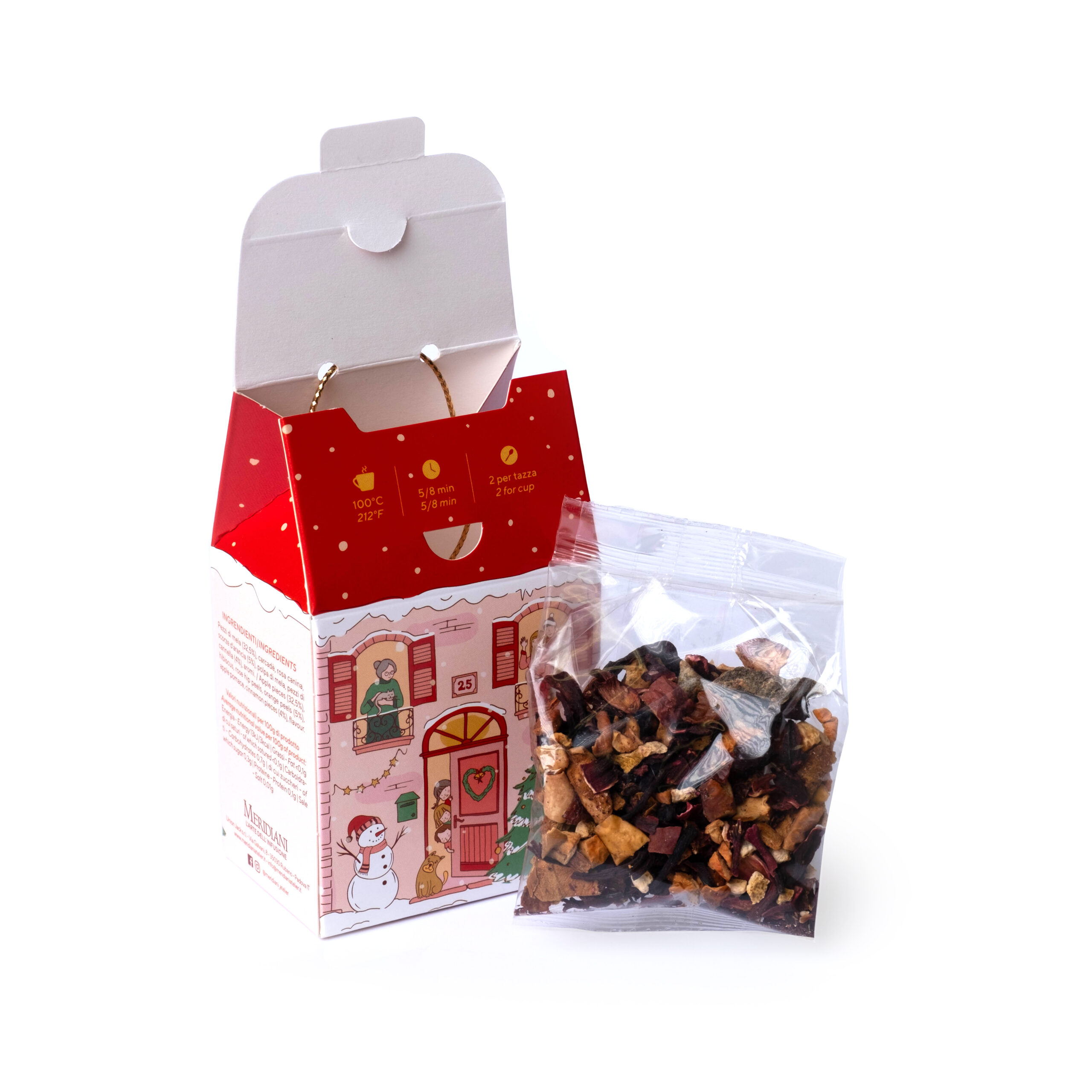 Il Villaggio di Natale (36x 25 g) – Kartonnen kersttoonbankdisplay met huisjes met een mix aan thee-, fruit- en kruidenblends (36x 25 g)