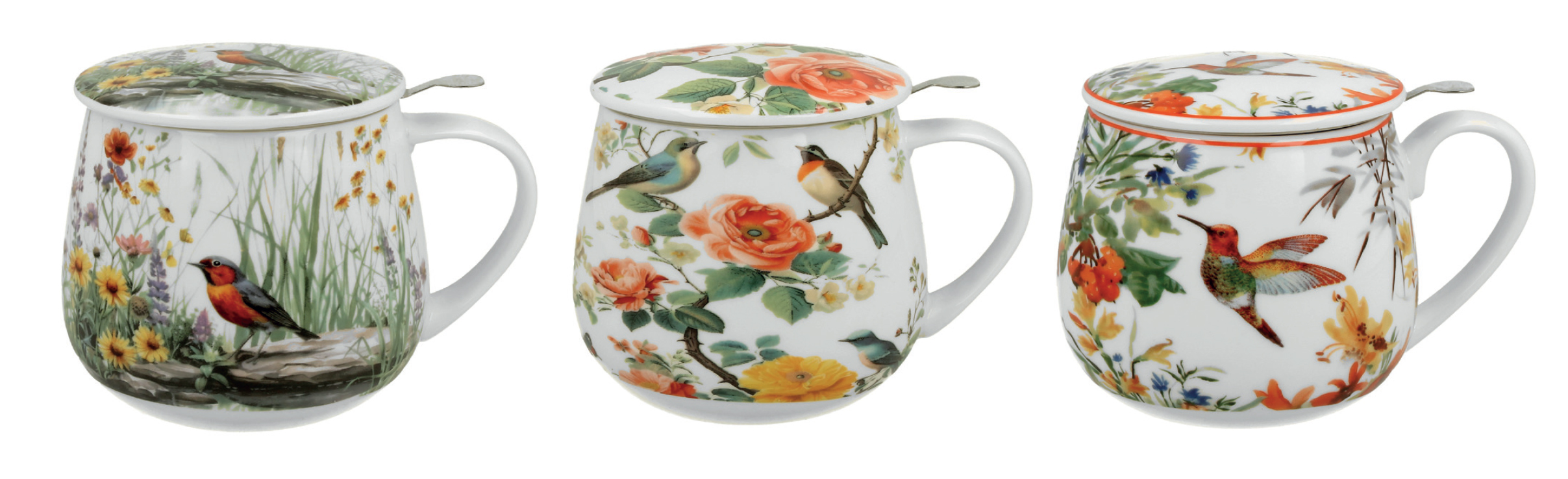 LOVING BIRDS, Tisaniera in porcellana con filtro in acciaio in gift box – LOVING BIRDS, porceleinen theebeker met stalen filter in geschenkdoos (3x 400 ml)