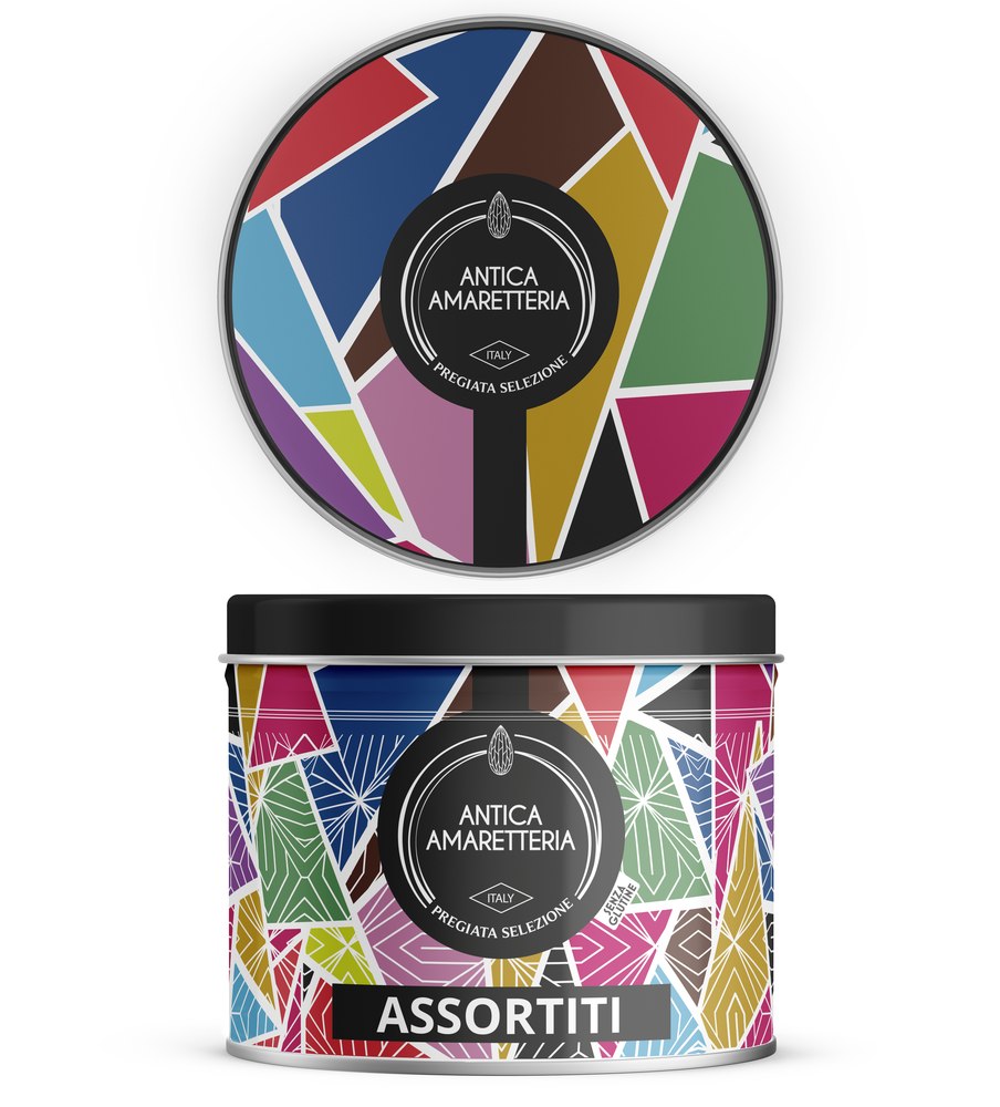 Morbidi amaretti assortiti in latta – Blik met een mix aan amaretti koekjes (320 g)