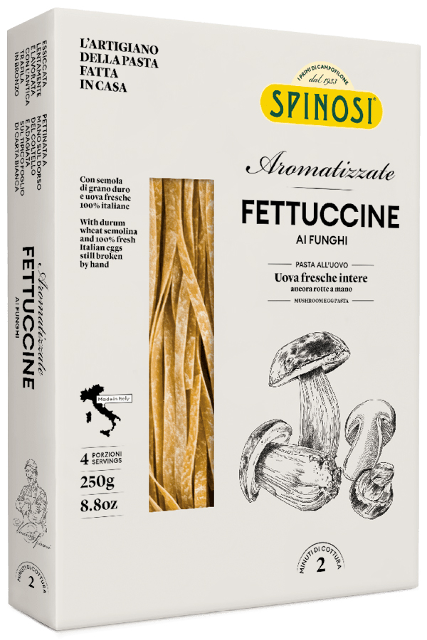 Gemaakt volgens de technieken van de oude pastatraditie van Campofilone, wordt onze klassieke Fettuccine op smaak gebracht en verrijkt met de delicate en karakteristieke smaak van de eekhoorntjesbrood.