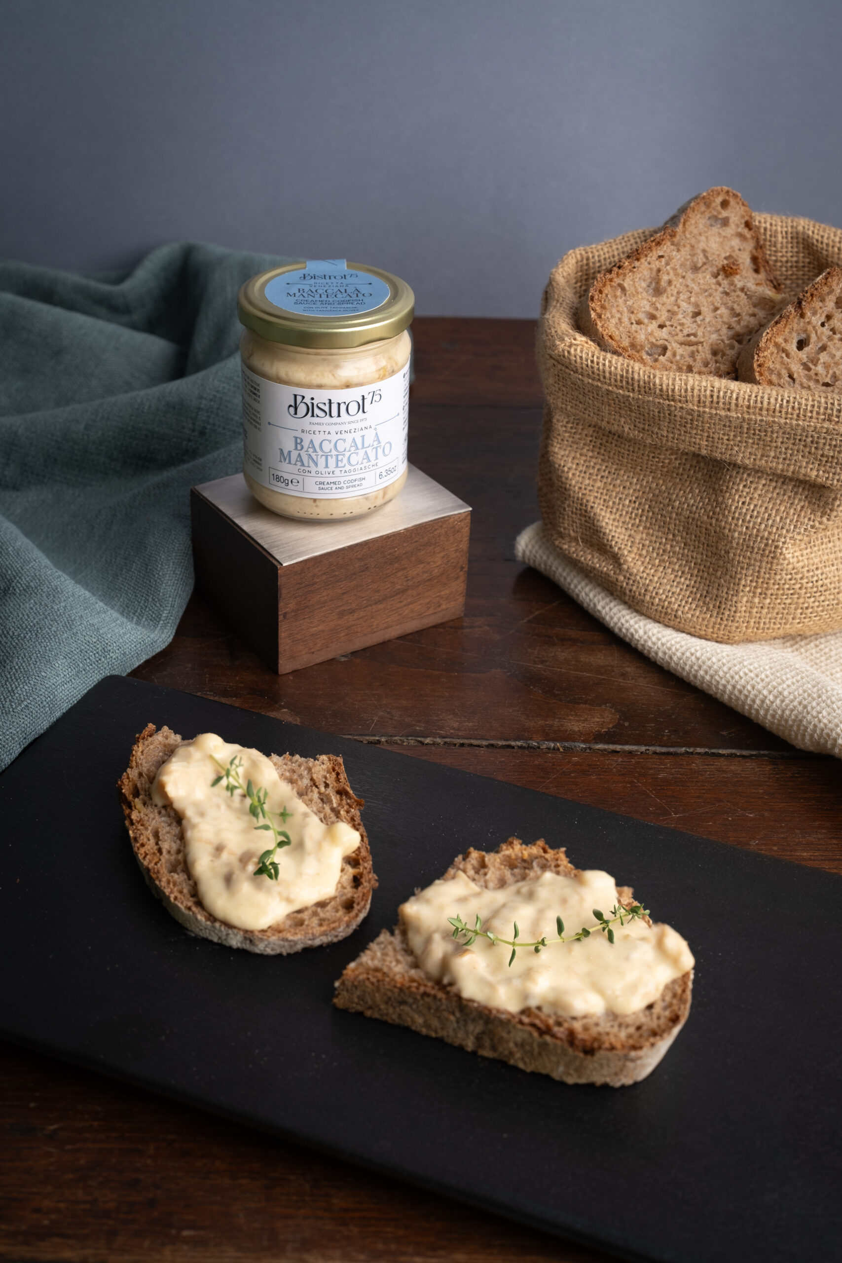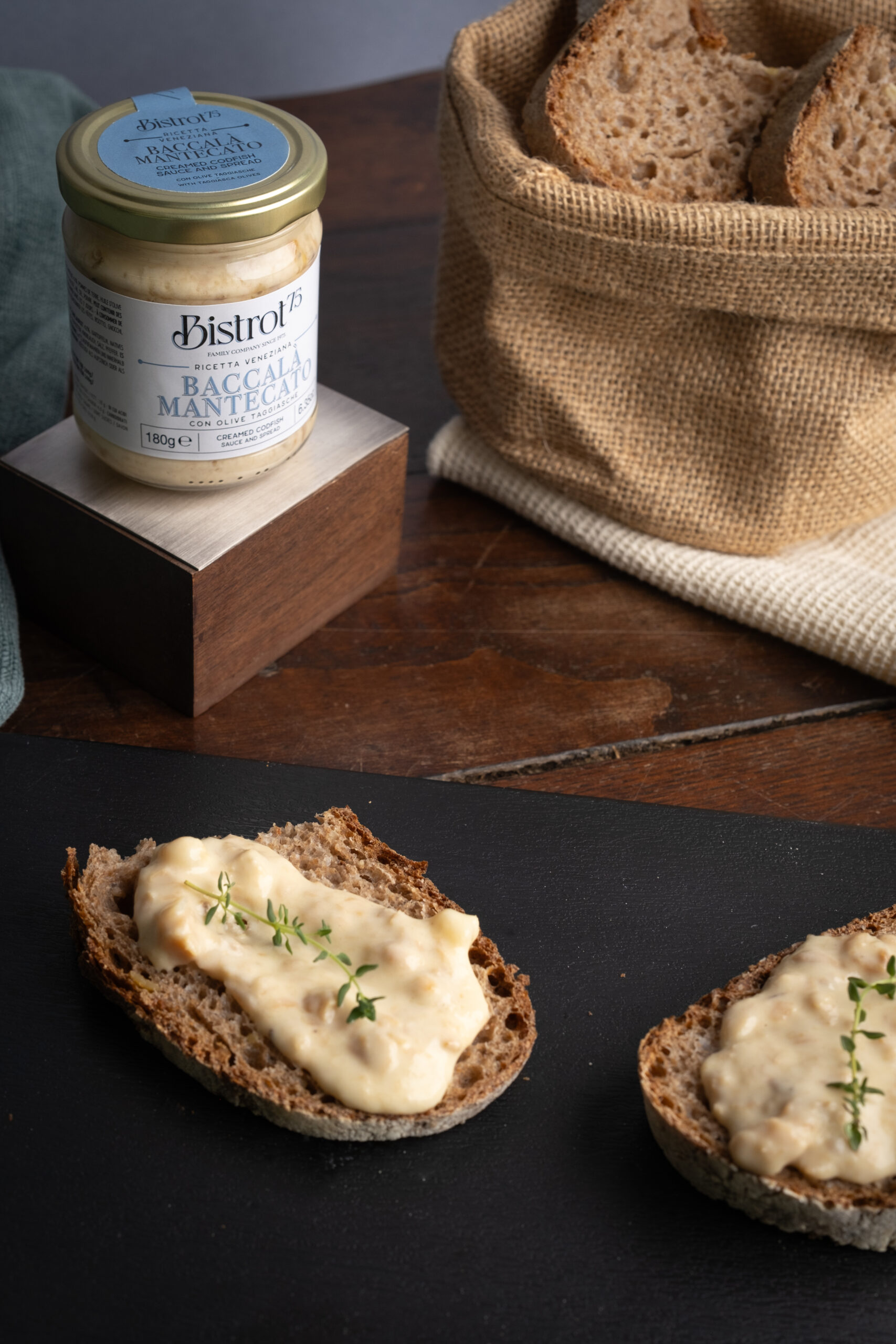BACCALÀ MANTECATO, deliziosa brandade di filetto di merluzzo e olive taggiasche – Heerlijke room met kabeljauwfilet en Taggiasca-olijven (180 g)