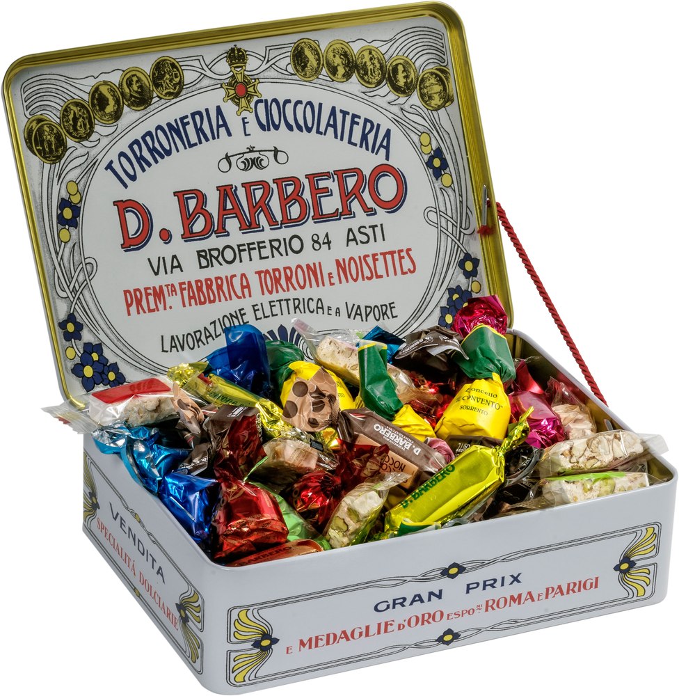Scatola di metallo con “Gran Misto” – Vintage blik met een mix van chocolaatjes en nougatstukjes (400 g)