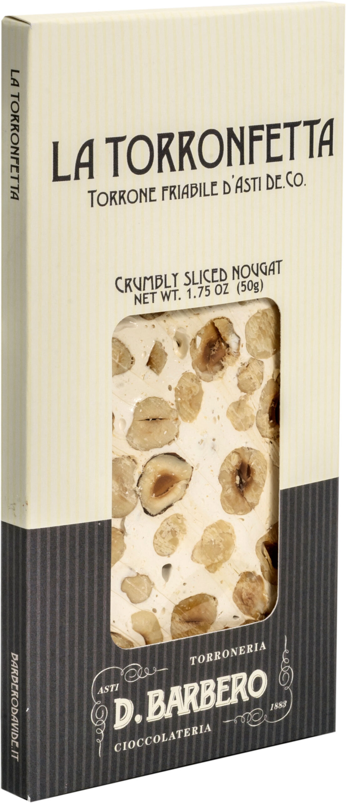 Singola torronfetta con nocciole in astuccio da 50 g, cartone da 20 confezioni