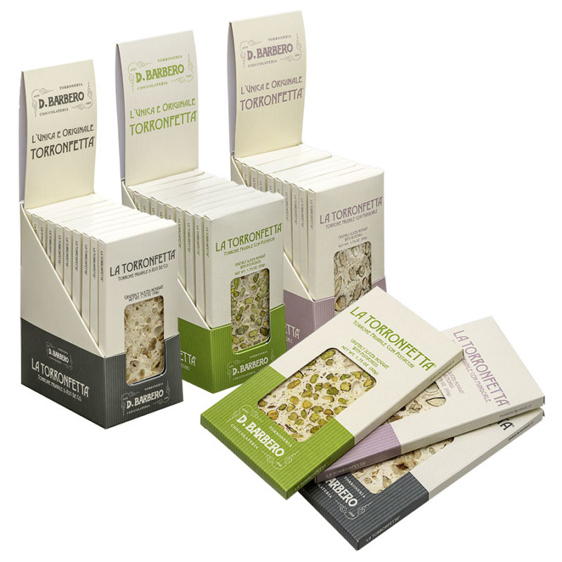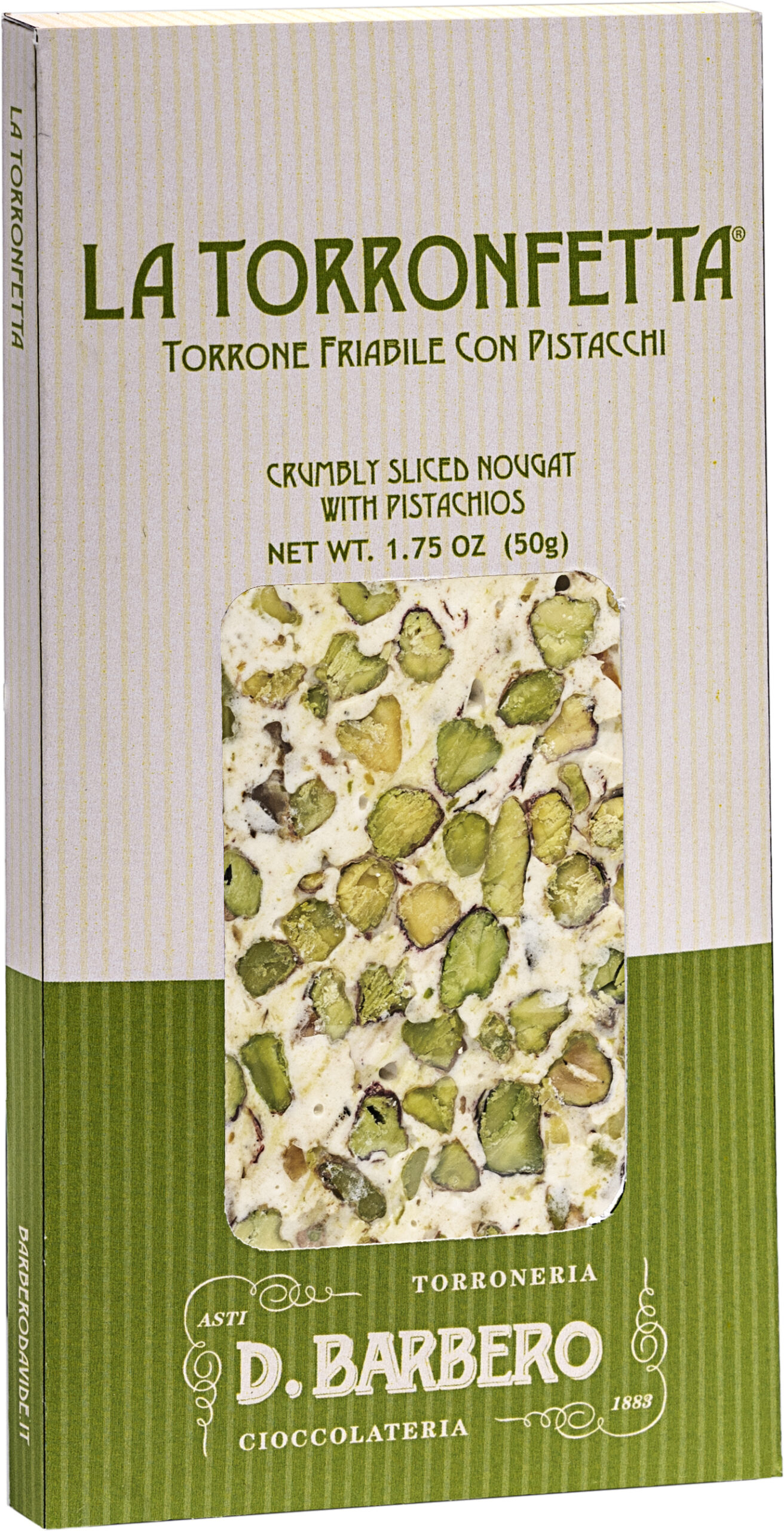 Singola torronfetta con pistacchi in astuccio da 50 g, cartone da 20 confezioni