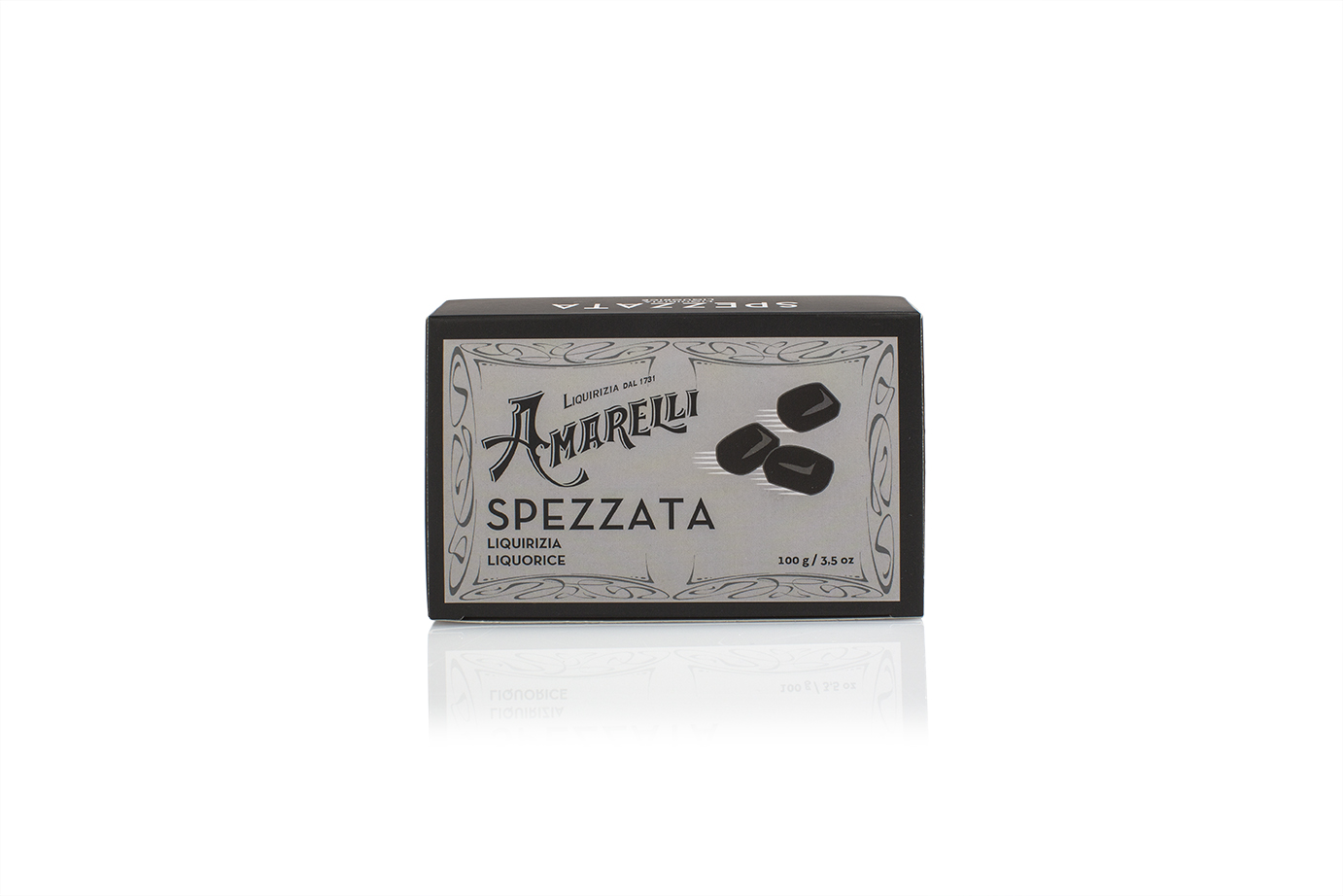 SPEZZATA, Liquirizia in pezzi irregolari D.O.P. – Zwart doosje met pure drop D.O.P. (100 g)