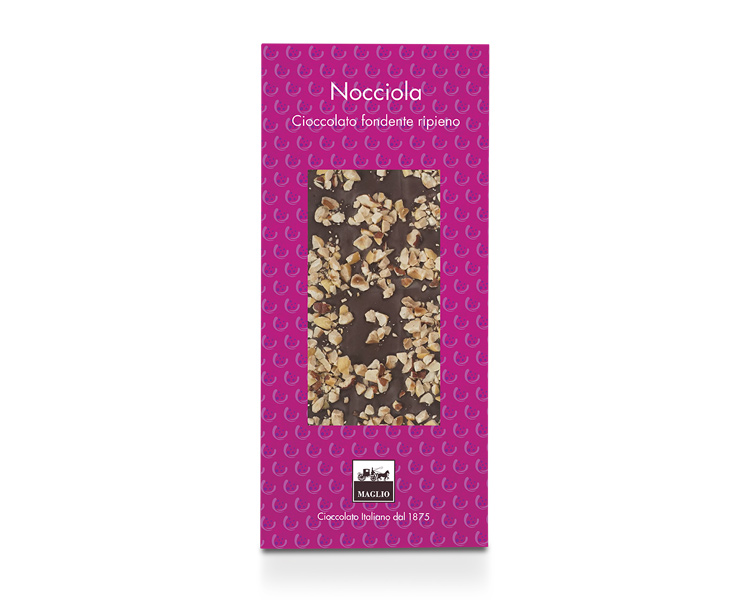Tavoletta fondente con ripieno e granella di nocciola (95 g)