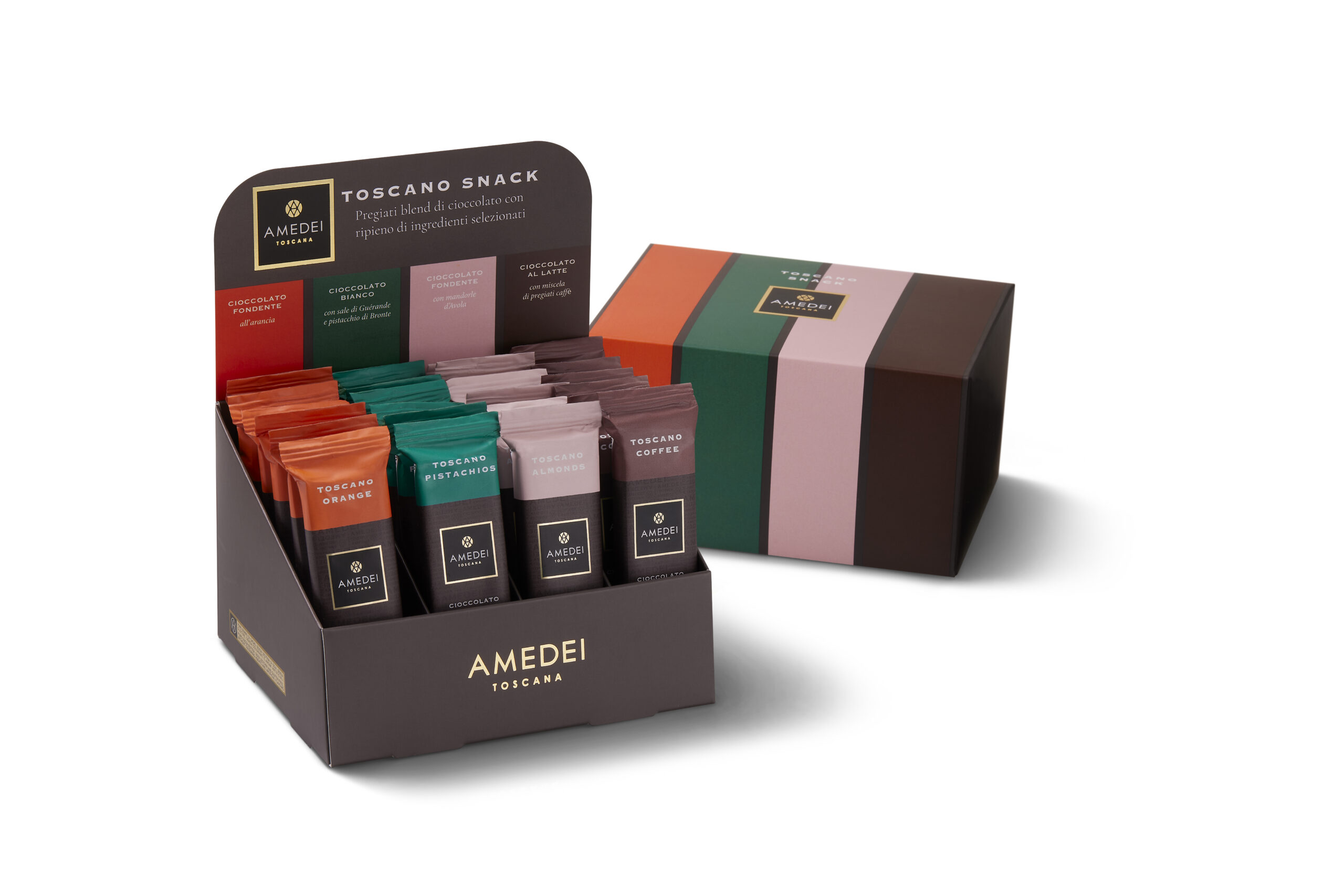 TOSCANO SNACKS, Expo 24 (6×4) gusti assortiti (pistacchio, mandorla, arancia, caffè) (4×6 à 20 g)